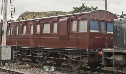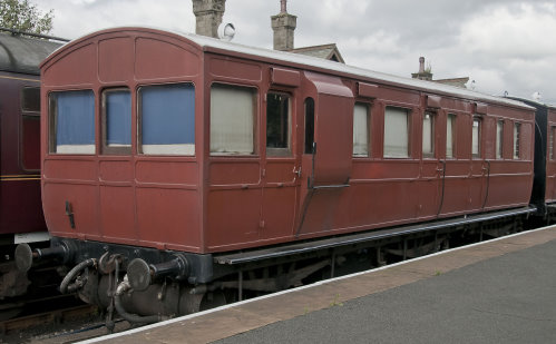 Built as 4 wheel. 12/1889: stretched, new underframe 1897. At Ipswich 1930s: then Mess van at Doncaster. P 1973 Market Overton, Carnforth 10/74, Fawley, Rutland. To Stately Trains 1994. Fully restored. Mangapps, East Anglian Railway Museum, then Embsay and Bolton Abbey Railway. To North Norfolk Railway for 2002, then back to Embsay. Painted teak effect livery. 02/26: moved from Embsay to Mid Suffolk Light Railway (purchased by group of members - only known surviving carriage to have been used on the original line). |