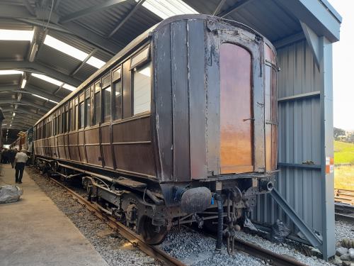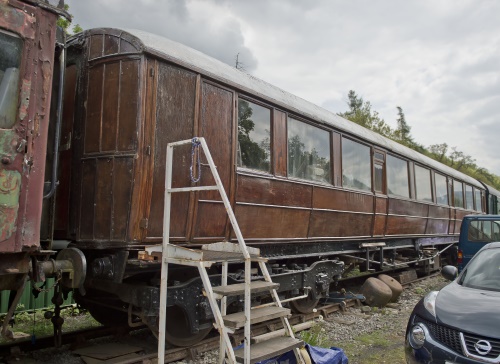 One of earliest Gresley-designed carriages. P c.1993 and was in Norwich goods yard until its recovery by road in 1995 - moved to Yorkshire where RFS Doncaster agreed to store the vehicle. Llangollen 07/01. Under restoration at Pentrefelin Shed: interior gutted, otherwise substantially complete. Repainted red/cream (to match livery at that time of GNR 229 (qv)). By 06/15 in use as a stores coach. 04/21: acquired by LNER Coach Association and 08/21 moved from Llangollen Railway to Embsay and Bolton Abbey Steam Railway. 11/25: moved from Embsay into storage at a private site near Kirby Misperton. |