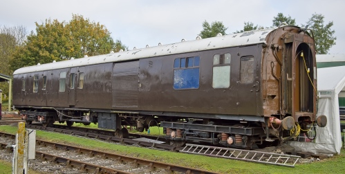 P 1996 by 1450 Ltd, stored at BR Old Oak Common until 1996. Later to Didcot Railway Centre where maintained by Heavy Freight Group as a social coach (the 'Black Python' Bar - see photo above). 09/20: moved from Didcot to Churnet Valley Railway. By 06/24: moved to Reid Freight Services site, Longton, Stoke-on-Trent. By 07/25: moved to Reid's Cockshute Sidings site. |