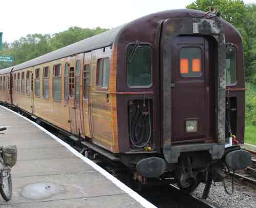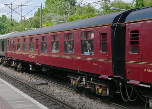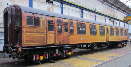 Converted to DSO York 1966 for 4-TC Class 491 (later Class 438) units for Waterloo/Weymouth line, running with Class 33 diesel or 73 electro-diesels or Class 430 4-REP units. To LT 1992 for excursions on Metropolitan line. OOU since 2003. Seen at Eastleigh Works 05/12 but by 09/12 back to TransPlant Ltd/London Underground at West Ruislip Depot. Seen at Swanage 05/14 (see first additional photo by Aaron Browning below). By 09/17: new livery; central door locking mechanisms added (see sloped attachments on the bottom of each door above the step plate) |