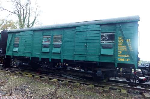 P 1977. Used as S&T Workshop at Ropley. Number carried on underframe plate. Reported 10/07 as now for restoration - completed and into green livery by 4/10. Now usually kept at Medstead. |
