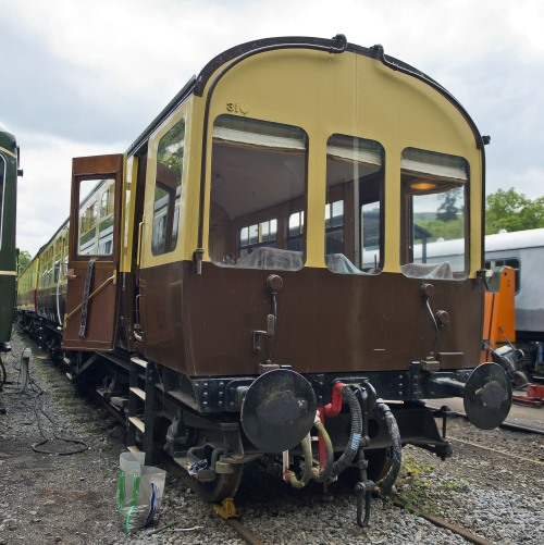 P 1993 (private). Overhaul Cranmore 1995. To Bodmin 2000 (conveyed HM the Queen), then SVR. Kitchen/toilet/seating missing/unserviceable. Overhaul by SVR cancelled when SVR member purchased 80972 (qv). 08/06: sheeted at Kidderminster awaiting move to Old Oak Common. However, to Llangollen and operational by 04/09. 02/22: refurbishment in progress. 02/26: moved from LLangollen to Gloucestershire Warwickshire Steam Railway. |