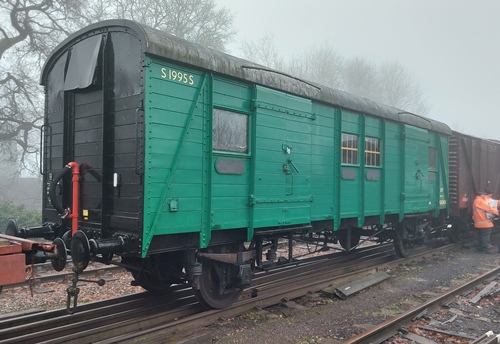 P 1976. Stored OOU at Medstead. Plans are to start restoration to SR lined Maunsell green livery towards end of 2008. When seen 04/10 was under restoration at Medstead, with framework being painted, body panels and windows being repaired/replaced. By 05/13: restoration completed - in SR Green and housing a model railway. 07/21: body overhaul and repaint in progress. |