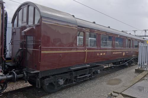Rebuilt 1929, gangway at one end. Renumbered 10874 1923, then 45050 1933. In use until P 1971; instrumentation intact. One LMS bogie (1949); other is 5-w L&Y. From Derby Museums to Princess Royal Class Locomotive Trust 09/05. Butterley to Ramparts 05/08 for full HLF-assisted restoration to LMS 1938 condition. Back to Butterley by 04/09. |