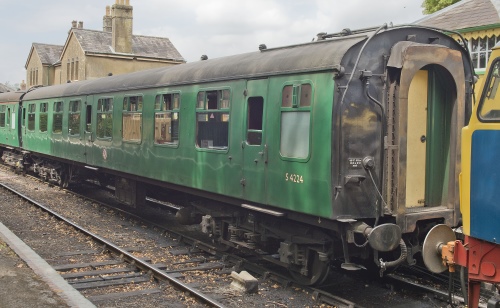 P 1983 by Scottish Railway Preservation Society. At Falkirk until 1988, then at Perth until 1990, then to Bo'ness. Vacuum brake, steam heat. Stored/catering. Underframe equipment incomplete. To Mid Hants Railway by 07/06. Repaired and repainted in BR(S) green livery at Ramparts, Derby: back to Mid Hants 11/06. |