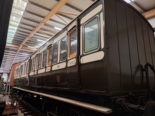 Tri-comp before grouping. W/d 1939. Converted to Wireless Van during the war. P.1970 privately, GWS till bequeathed to NRM York 1984. Withdrawn from National Collection. 1991 to Welsh Ind Mar Mus, Cardiff: then to Nantgarw Store, nr Caerphilly. Fully restored; only two compts complete (1 1st, 1 3rd). Central area used for display. De-accessioned from the National Museum of Wales collection and moved to Cambrian Railway Oswestry 02/26. |
