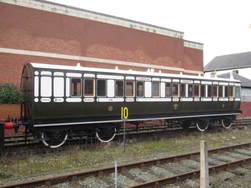 Tri-comp before grouping. W/d 1939. Converted to Wireless Van during the war. P.1970 privately, GWS till bequeathed to NRM York 1984. Withdrawn from National Collection. 1991 to Welsh Ind Mar Mus, Cardiff: then to Nantgarw Store, nr Caerphilly. Two Compartments fully restored - one 1st, one 3rd - at each end; central area available to be used for display. De-accessioned from the National Museum of Wales collection and moved to Cambrian Railway Oswestry 02/26. |