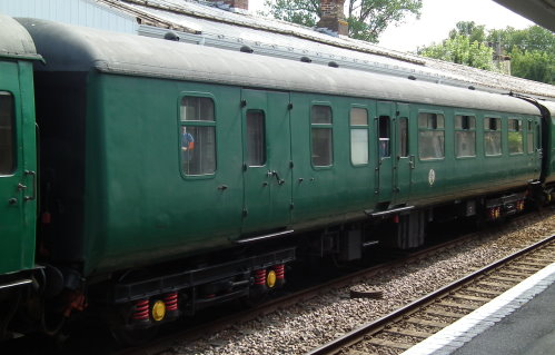 BR4 bogies. At Polmadie, Glasgow till W early 1990s. Ex West Highland Tourist set. To Spa Valley 3/98. Restored to SR green livery. Interior varnished woodwork. 06/18: outshopped following a bodywork overhaul and repaint, including provision of wheelchair access. 03/19: interior overhaul completed, including re-trimming of all seats, re-varnish of all the woodwork, deep clean and the laying of carpet - returned to traffic and will form part of dining trains. |