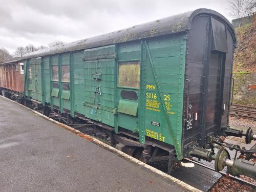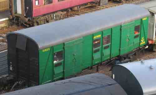 Purchased from BR circa 1990 and moved from New Cross to Swanage. In early 1990s it was moved to Bitton to provide a covered workshop for restoration of various major components of 80104 and 80078. Moved belatedly to Midsomer Norton owing to lack of room or need for it at Swanage. It is on indefinite loan to MN with no intention or requirement to return it to Swanage. Much refurbishment work has been undertaken by MN. |
