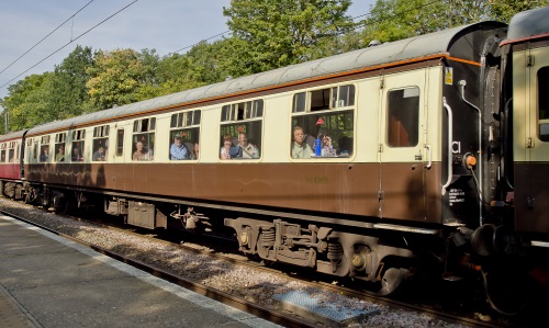 Centre doors locked out. In Old Oak Common rail charter formations in BR Maroon livery. In store at Old Oak Common until its closure in 2009 - then to Eastleigh Arriva TrainCare and later to Eastleigh Works. By 02/11: in BR(W) Chocolate and Cream livery. Autumn 2021: moved on loan to Spa Valley Railway. |