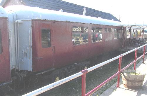 P.1995 at 'Pleasure Island' as 'Tarzan's Chicken Express'; now 'Station Café'. Half of one side removed to allow extended café area. Stripped internally. Kitchen in adjacent FK 13453. Both still there 02/16: maroon livery, white roofs but not carrying numbers. 09/25: confirmed still in situ and in use. |