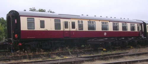 P 1984 by Pullman-Rail, based at Bounds Green until 1995. Commonwealth bogies. Seats re-covered in blue/grey, traditional style. Centre doors locked off. From Crewe to Old Oak Common by 11/05. In store at Old Oak Common until its closure - then to Eastleigh Arriva TrainCare and later to Eastleigh Works. 07/15: seen in Riviera Train set. By 09/21: at East Somerset Railway. 06/23:livery changed from BR(W) chocolate and cream to BR crimson lake and cream. By 07/23: moved from East Somerset Railway to West Somerset Railway. By 03/24: moved to Gloucestershire Warwickshire Steam Railway. |