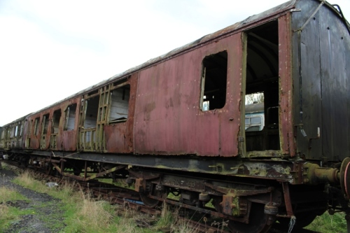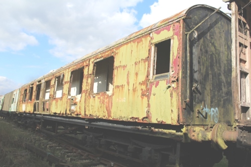 P 1979 NYMR, where used as a dormitory coach. To Churnet Valley 2/02. Partially sheeted and stored OOU at Oakamoor. From Churnet Valley to Peak Rail 11/12. Stored OOU at Darley Dale by 04/13. 05/25: confirmed still in situ. |