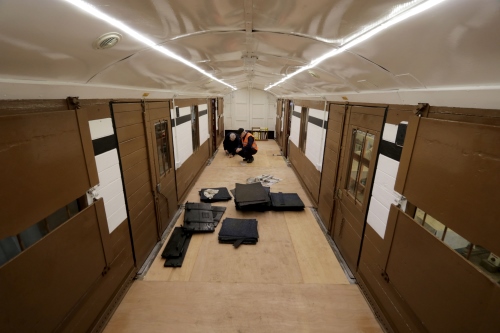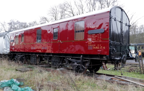 To internal user 12/83. 'Hidden' with other vehicles at Wakefield Kirkgate Engineers Yard from ca. 1983. Recovered and P c.07/01. Donated to LMS Carriage Association - then moved to Rowsley South. By 2016: being restored by LMSCA at Rowsley. 12/17: restoration complete (see main and third additional photos); to be used by LMSCA as an upholstery/trimming workshop (original electrics work, although LED lighting has been added to increase illumination and mains electric connectivity for its workshop use). It will be mainly static, but could be used in a demonstration freight train - would require brake overhaul before being used on passenger trains. 05/25: confirmed still in situ. |