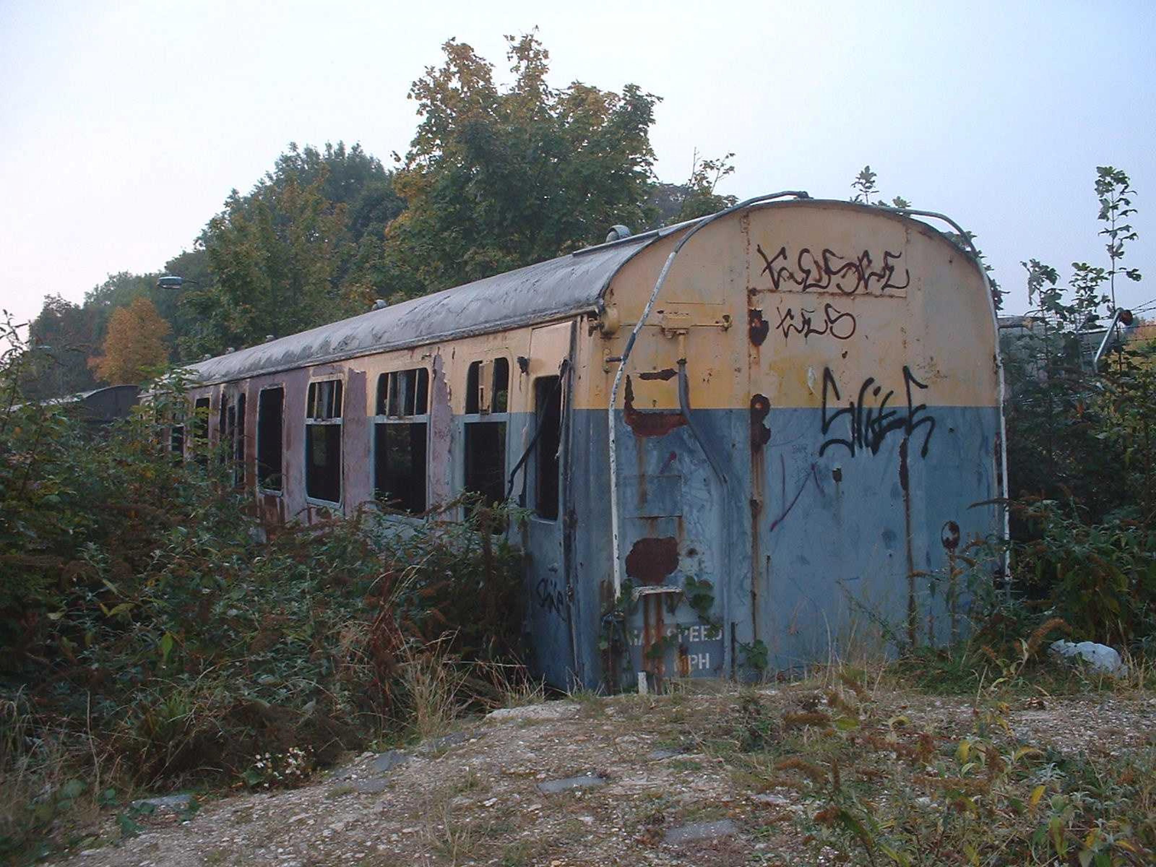Latterly CCE Staff coach at Barrow-in-Furness. It was moved from there to Mangapps Farm ca 08/00, then to South Midland Railway ca 04/01. (This intended Heritage Railway was on the Luton to Dunstable line, adjacent to Paul Simon's Carpet Warehouse/AWD Factory). Fire damaged, bad condition. Scrapped Snailwell 12/04. Photo Peter Wreford courtesy of DPTnet www.departmentals.com |
