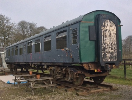 From EMU Unit 1569/7198/207203. Was at North Yorkshire Moors. Later gutted and serving as a private office at 'Garden Art', Bath Road, Hungerford. 2016: moved to Source Farm Shop, Hungerford Park, Hungerford. |