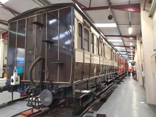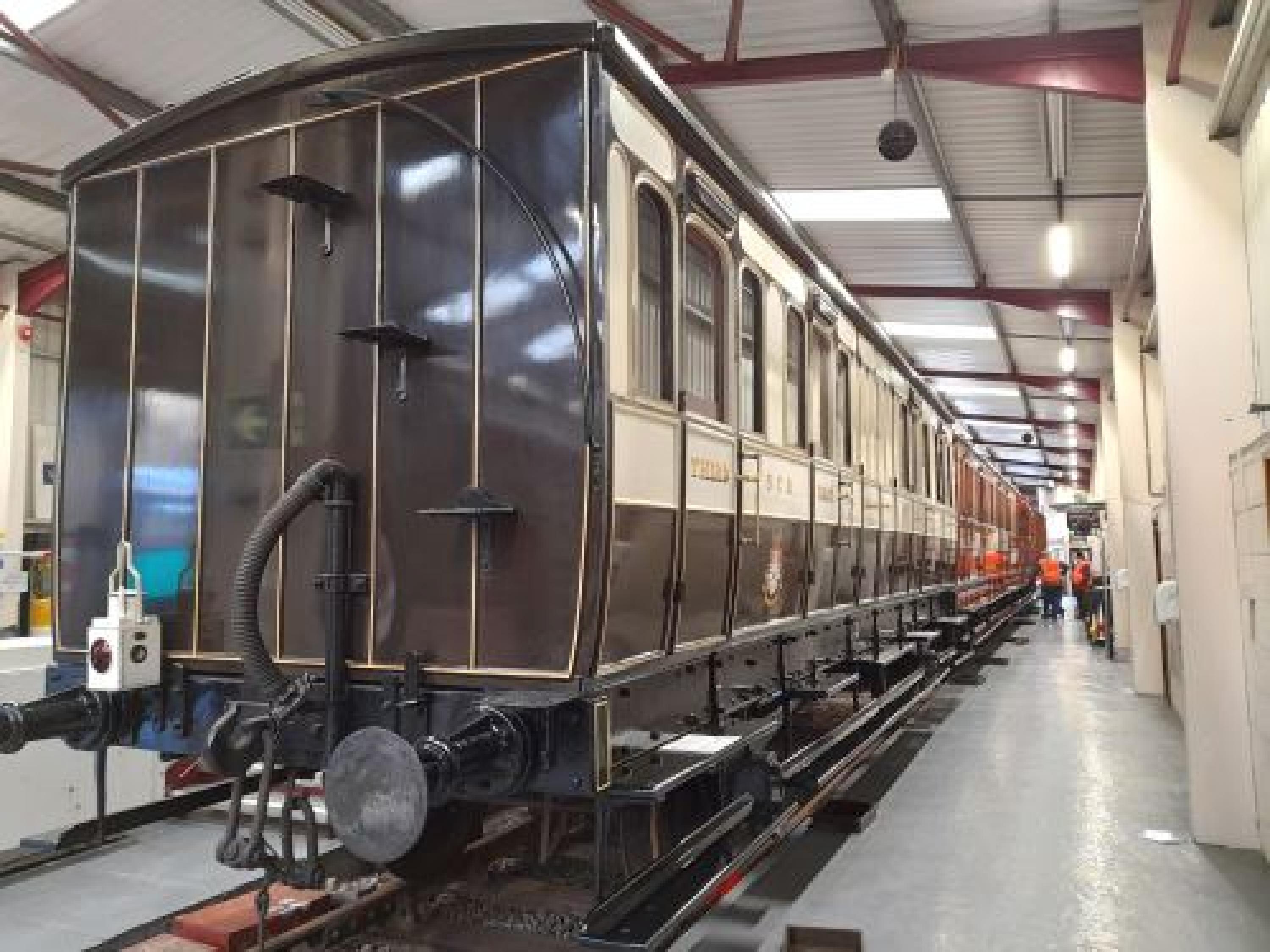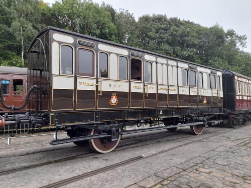 P 1961. (Original no. listed as 103, incorrectly). Original no 277, later 277A. 1788c is possible, but less likely. Was a gutted stores van. Some non-authentic material, especially in replicated 1st Class compartment. Joint winner ARPS coach competition. |