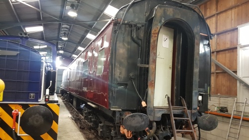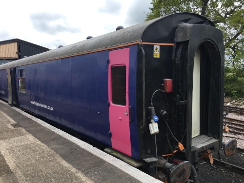 TSO; converted to Cinema Coach and used in travelling exhibition marking 150 years of modern railway in 1975. Then internal user vehicle (TOPS QXX), used to show staff training films until 1988. Then used as meeting room at St Philips Marsh T&RSMD, Bristol. P and moved 03/19 from Bristol to Swindon and Cricklade Railway. By 08/20: livery being changed from First Great Western to BR maroon. 09/25: following restoration, used to show films again as part of Railway 200 celebrations. |