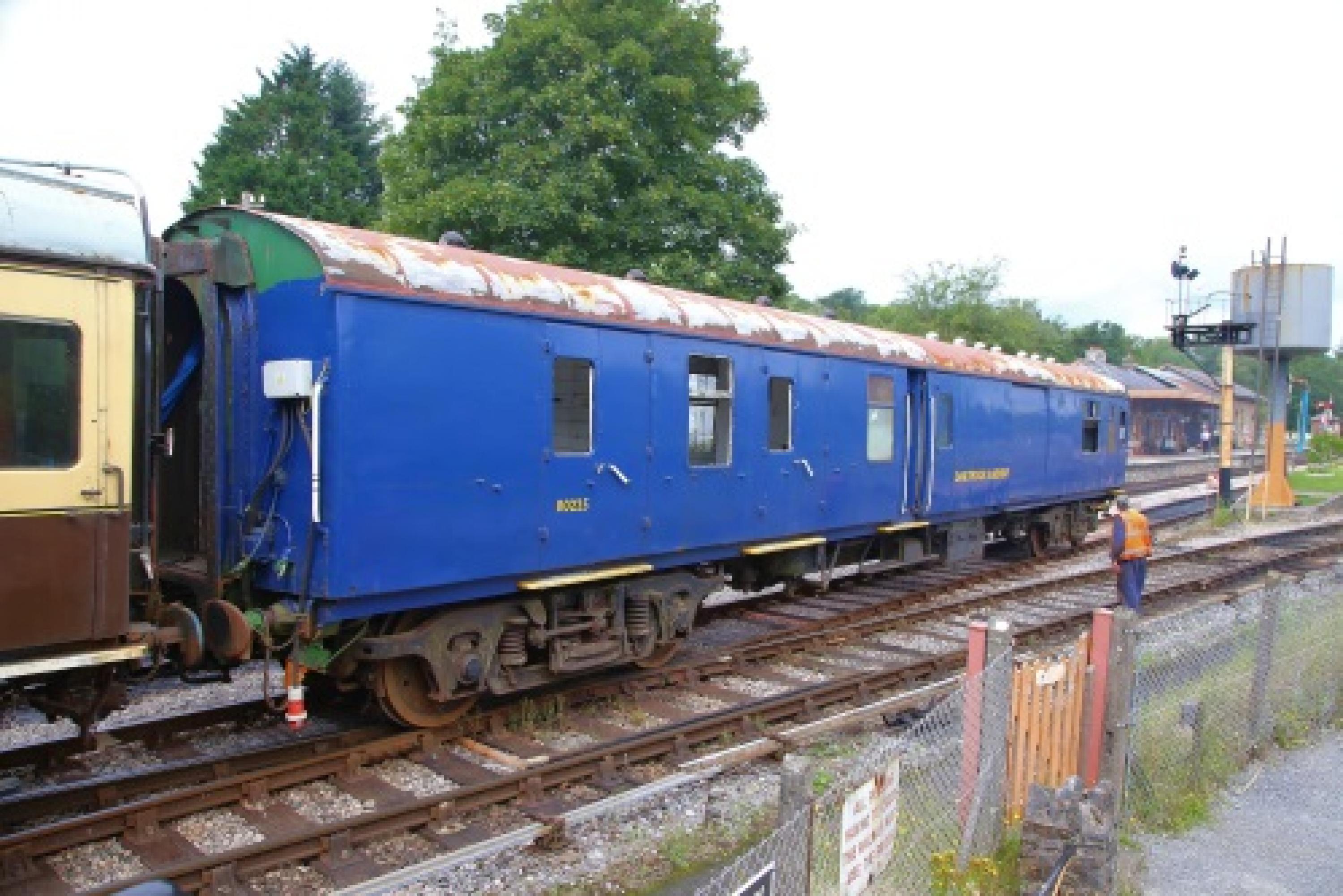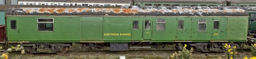 Built as BSK, rebuilt as NNX Courier vehicle in 1987 (Design Code NN504). P 1994 by Merchant Navy Locomotive Preservation Society. At Southall until to Okehampton Station. Repainted in BR(S) green but internally as in final BR service. By 06/19: repainted in blue livery. 07/21: moved from Dartmoor Railway to South Devon Railway. By 01/26: converted into a buffet car with a buffet counter in the former compartment area. |