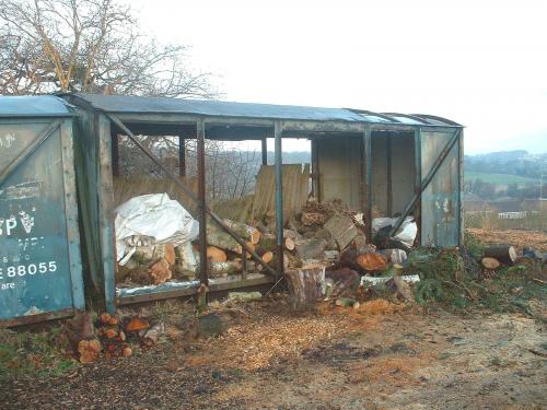 Right of three fish van bodies at Upper Birches Farm, Rugeley. Can be seen from main road. All scrapped on site by 11/14. |