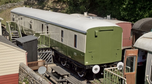 P?. At Brightlingsea where it was refurbished by Rail & Marine Engineering as modern camping coach; then in use for this purpose in 1993 at Ilderton Station, Northumberland. To North Yorks Moors Railway (NYMR) by March 1999: at Goathland (172 was the next number in NYMR series). C.10/21: moved from NYMR to Barrow Hill for work by Rampart Engineering. By 08/22: returned to NYMR and returned to use at Goathland as camping coach (modern accommodation). |