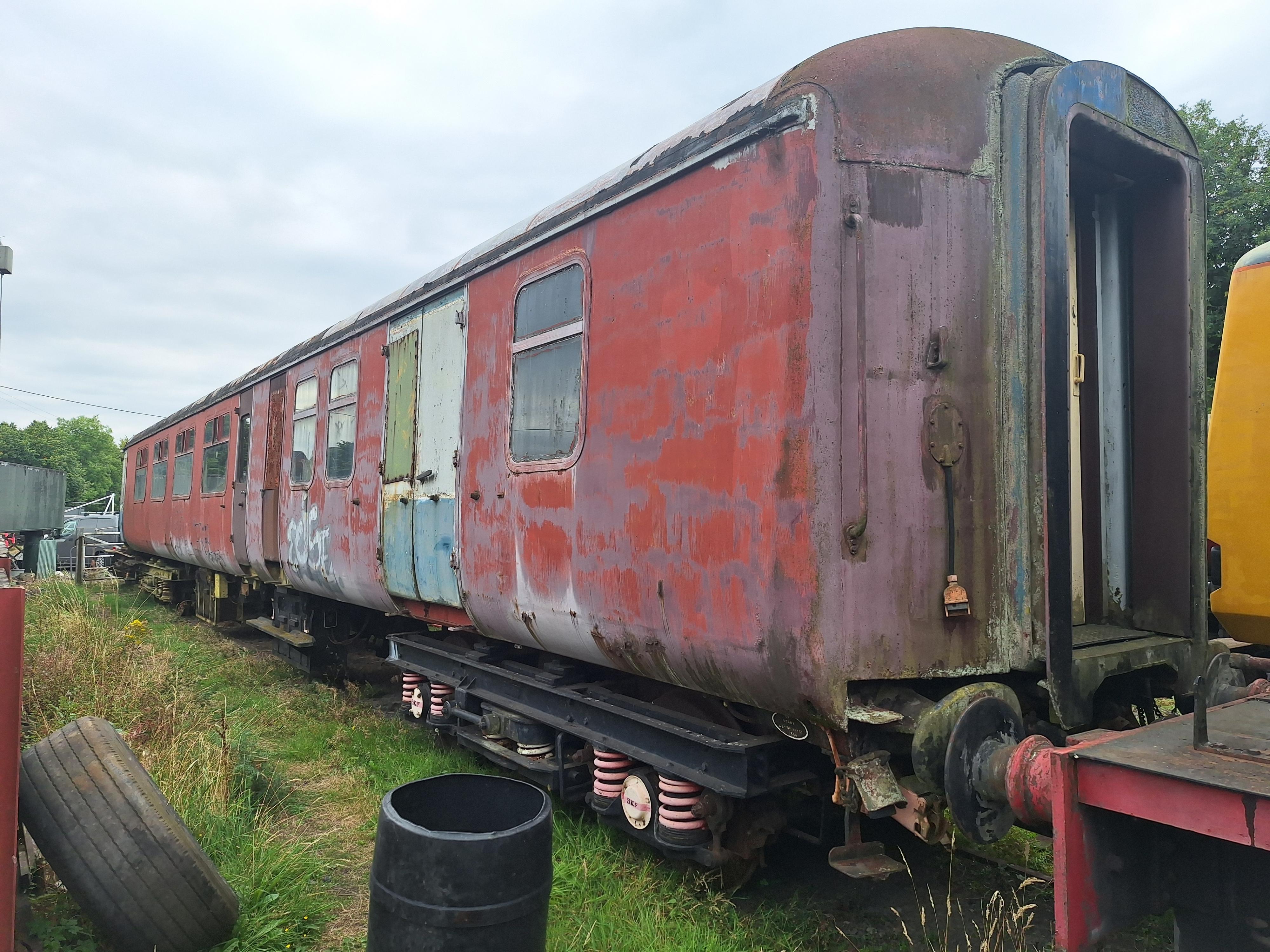 Mk 2. P 1991 and in traffic until c.1996 when taken OOS for repairs. Restoration/repair in hand when seen 06/08, but little visible progress by 05/12. Different liveries on the two sides, as shown in photos. 03/22: moved from Peak Rail to Telford Steam Railway. |