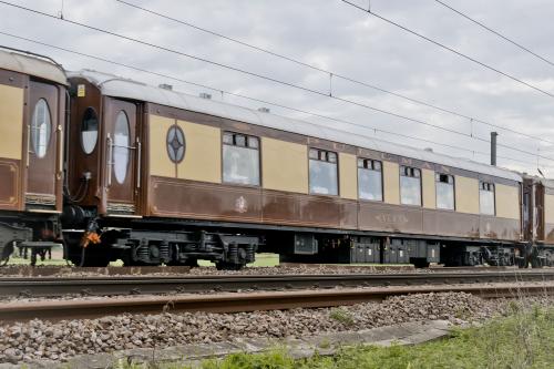 5-BEL Brighton Belle Car B. 750 v 3rd rail. P 1972 at Westleton, Suffolk. Sold to VSOE 1985. To Kilnhurst 1989, converted for loco haulage using BR Mk1 headstocks & couplings. Bogies sold for 'Bertha' (qv), replaced with BR(S) B5 bogies, then fitted out during 1990 at Stewarts Lane. |