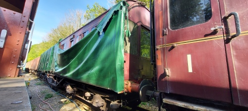 DCE's Saloon. P 1989 by Llangollen RS, restored at Chester goods shed. To Llangollen Autumn 1990, slow refurbishment. To Mid-Hants by 05/00. OOU during 2005. To Crewe Heritage by 5/08 for restoration. Back to Mid Hants by 5/10. Advertised as for sale 08/13. Still at Mid-Hants 07/15. 04/22: ownership transferred from private owner to Mid Hants Railway; roof repairs required; no immediate plan for restoration but is a highly desired vehicle for return to traffic. |