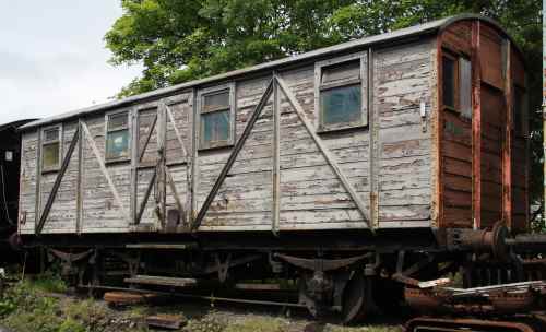 'Bloater' (fish) van. Converted to Departmental use for Messrs Pooley (weighing machine maintenance contractors) by reducing the door openings from three to one per side. Based at Taunton. The forge remains in the van. P 1989 Llangollen. 'Authenticity' notes below relate to Departmental use. Was expected to go to Cambrian Railways Trust, Llynclys 11/03. Reported as having left Llangollen by 06/14 but then confirmed not to be the case - and 05/25 confirmed still in situ. |