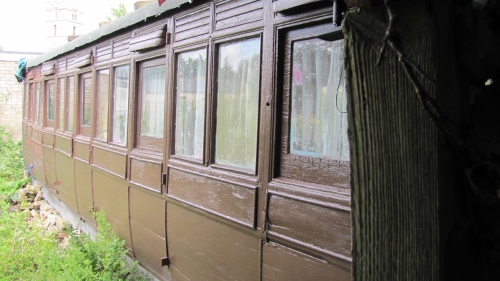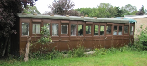 Built in second half of 1867 to a Sinclair design but to a length of 26ft, unique for this style of carriage (all others built from 1858 were to lengths between 16ft and 24ft). Also, last carriage built to the Sinclair style, even though he had retired at the end of 1865 (and had been succeeded by Johnson in July 1866). Originally built for main line services from London to Norwich via Cambridge or Ipswich, seating 10 passengers in each compartment - initially with full height partitions, each compartment lit by a single oil lamp and no brakes but modernised c.1885 by replacing many of the fittings, wheels and springs and by the addition of brakes. Transferred to London suburban services by 1891 - with replacement buffers and gas lighting. W 06/1892 and sold 01/11/1892 for £6. Located at 'Kirkside & Barn', 30 Station Road, Waterbeach. 01/26: confirmed still in situ. |