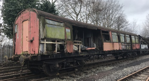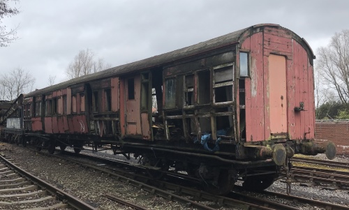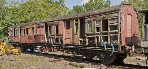 P 1978 by GCR Coach Group and at Quainton until sold to private owner 1987, then Carnforth until donated to Crewe Heritage Centre. From there to Wolverton Works 07/08. Intention was to restore for a proposed new museum in Wolverton. In the event this did not go ahead. Back to Crewe Heritage Centre 06/11 where intention is to restore at some stage. 03/22: body believed scrapped - no longer visible but there was an underframe in its position. 06/22: underframe moved from Crewe to Peak Rail. 12/23: underframe confirmed still stored at Peak Rail and still carrying frame of LNWR 3061 (qv). 05/25: confirmed still in situ. |