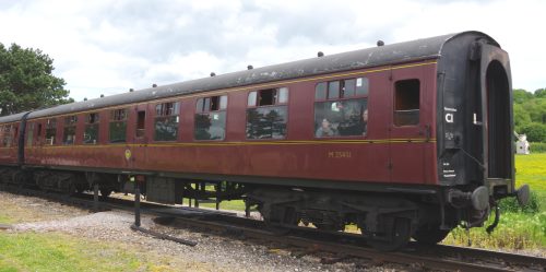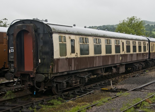 P 1982 at DVR. To GWSR 1985. Refurbished 5/94. B1 bogies. Forms part of the chocolate & Cream passenger rake. 10/16: after repair and repaint it is now in service in Rake 2 - BR Maroon. |