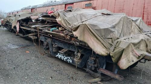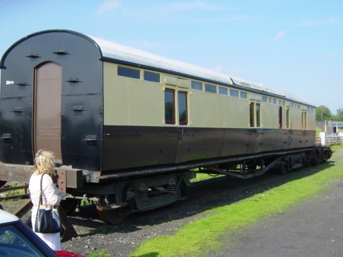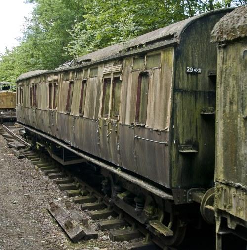 Finished main-line life as Mess Van for Severn Tunnel train. P 1981 from Radyr, gutted (including brake gear) and housed model railway on Severn Valley Railway. Privately owned - by 09/05 to Great Central Railway but moved again by 08/09 to Battlefield Line. By 07/14 very much OOU and body collapsing (compare main photo with Kevin Stroud's photo below showing condition as at 09/07). By 12/17: to Vale of Berkeley Railway (stored at Berkeley Power Station). By 09/23: moved to International Metals & Cable Recycling, Long Marston. By 07/25: moved to Railway Support Services, Rye Farm, Wishaw. By 02/26: now underframe only. |