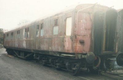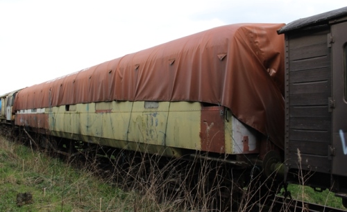 12 wheel. P 1971 on SVR. Declared surplus to SVR's needs early 2001 and to Crewe Heritage Centre by 12/05. By 08/16: moved to Peak Rail and partially sheeted - see additional photo below. 05/25: confirmed still in situ: still sheeted. |