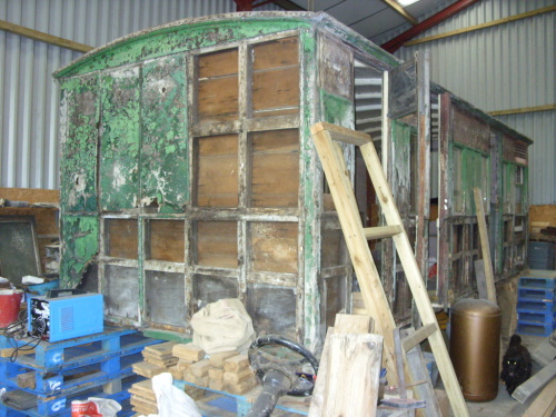 21 ft Composite: 1 1st, 1 2nd and 2 luggage compartments. Narrow (i.e.: standard) gauge. Became all 1st 08/1867, 'new bottom' at Swindon 1878 (when possibly became a Saloon?). W 10/1887. Lived in by cook at Allensmore Court (nr Hereford) until 1950s. P 2005. By 04/19: moved from Old Radnor to The Old Post House, Blakemere. Body mounted onto a purpose-built road trailer. By 07/22: body now mounted on underframe from BR Fish Van 87249 (qv). |