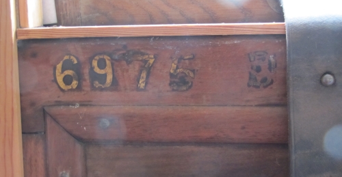 Built as BG composite. Converted to Std Gauge 7 May 1892. (Diag E2). 3 x 1st, 3 x 2nd Guard+luggage compt. Seconds later downgraded to 3rds (c.1909). Renumbered 6975 in 1907. Cond 7 June 1930. Converted 1937 as living accommodation 'Gwelfryn', near Crymych, Pembrokeshire (situated by the right hand side of the A478 - towards Cardigan from Llandissilio - before entering Crymch). Number 6975 found on two internal doors (see second additional photo below). By 2019: scrapped when site cleared for new property to be built. |