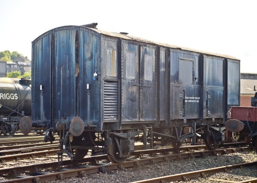 1960/1961 Swindon re-use of underframe of 4-wheel Special Cattle Van 3716 for new Steam Heating Van. Acquired privately 1995, donated to SRPS 3/00. Moved from Boness to Aviemore 01/2026. |