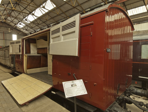 P 1971 by Derby Corporation. 4 wheel horse box, fully restored to original style. Manger doors rebuilt; some new leather fitted. Usually on display in Matthew Kirtley Museum, Swanwick Junction, but at times used in Vintage Train (see main photo). 02/06: refurbishment in progress. |