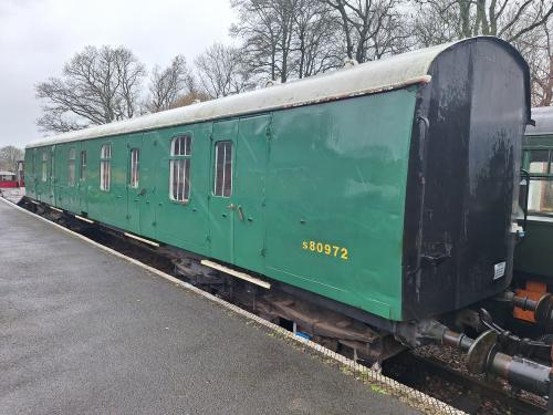 P 1990, used as stores/workshop for West Somerset Railway Association S&T Department. Stabled alongside Platform 1 at Bishops Lydeard with Quantock Belle set. Faded red-oxide livery. B4 bogies fitted. 03/10: in storage at Dunster. By 05/13: at Minehead. By 02/21: moved to Washford (Somerset and Dorset Railway Trust). By 02/22: moved to Mid-Hants Railway. 08/25: sold by the Somerset and Dorset Railway Trust to the Somerset and Dorset Railway Heritage Trust and moved to Midsomer Norton station. |