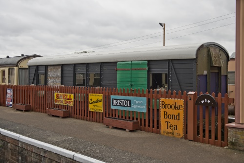 P 1985. Used as store at Minehead - temporarily at Dunster during canopy repair work at Minehead 01/05. No covers. Has deteriorated somewhat over last few years. By 04/11 to Honeybourne Industrial Estate with GWR2501. (813 Fund). By 06/14 to West Somerset Railway |