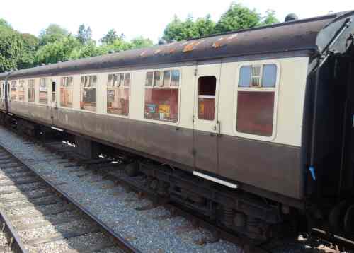 P 1998. Built with Commonwealth bogies. Former Bristol Instruction coach. Overhaul and conversion to Buffet Car (RBR) completed at Minehead 7/00. Chocolate & Cream livery. Now on B4 bogies. |
