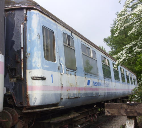 B4 bogies. Built for BR Western Region. Was planned to be used as volunteer accommodation but conversion did not take place, owing to time and resource pressures. One side painted BR(S) green, the other side Network South East livery. By 10/21: in a siding at Medstead and Four Marks station - awaiting scrapping. 07/22: still in situ. 11/25: scrapped on site at Medstead and Four Marks. |