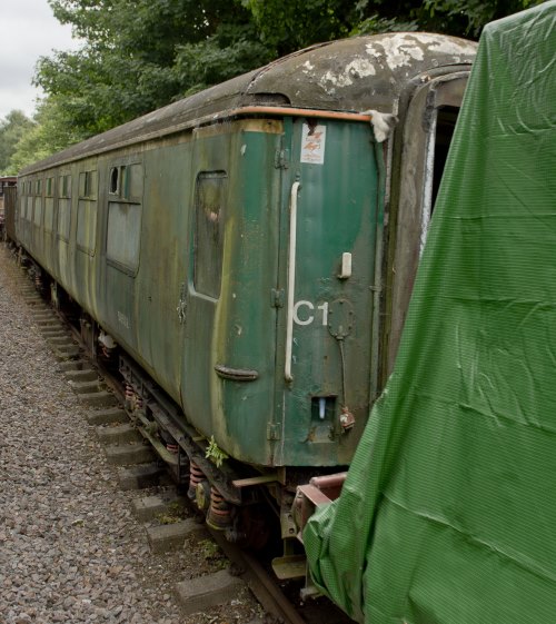 B4 bogies. Built for BR Western Region. Was planned to be used as volunteer accommodation but conversion did not take place, owing to time and resource pressures. One side painted BR(S) green, the other side Network South East livery. By 10/21: in a siding at Medstead and Four Marks station - awaiting scrapping. 07/22: still in situ. Scrapped on site at Medstead and Four Marks 11/25. |