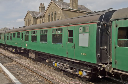 P 1982. B5 bogies - as built. Seating ex CEP/BEP electric units. Built for Southern Region. To East Somerset during 2005 for full refurbishment and repaint into SR Green, returned 09/05 and back in use. |