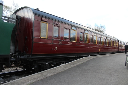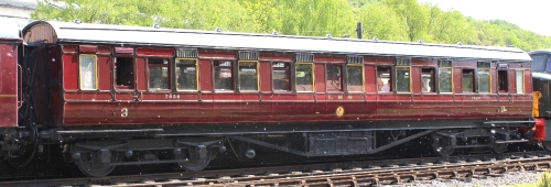 Mess and Staff car, BR(LMR) Control Train. P 1980. Partially restored by Derby Works apprentices, but not completed. Then stored at National Railway Museum until to Peak Rail Rowsley late 2003 on 10-year loan to LMS Carriage Association for restoration and then dining use. Restoration completed 03/16. 05/25: confirmed still in situ. |