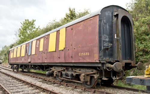 P 1988, TP Carnforth Restorations and in owner's maroon rake by 1991: to Rushden 1997. To European Metal Recycling, Kingsbury for scrap 10/25. |