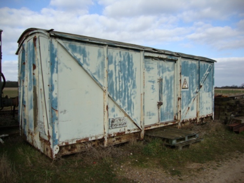 Body P 1991, ex Mayer Newman, Snailwell. Used as farm chemical store at Mangapps. Located at Old Heath Station. |