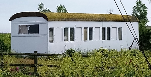 Built 18xx, (predates SECR) Delivered to Rye Harbour in 1928 for use as a tea room when Mary Stanford Lifeboat capsized (all 17 crew drowned). Was one of 6 vehicles at this location. Teak built - iron fastenings stamped LBSCR & SECR (from latter repairs?) Tare 10 Tons. 5 uniform compartment sizes (believed Third), although roof beams to centre compartment slightly different. Now completely clad. Used as holiday home. |