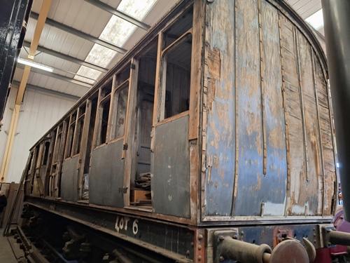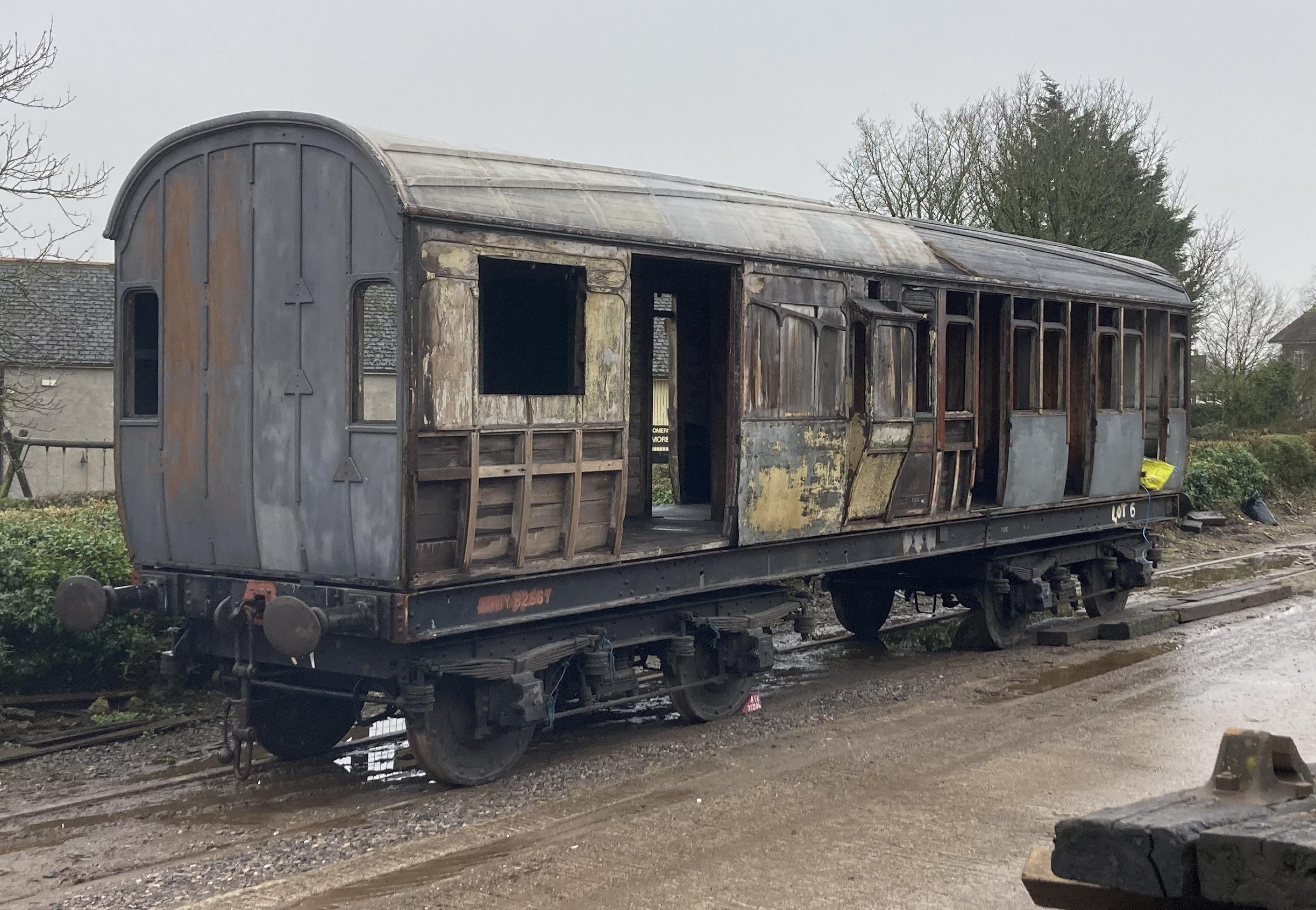 Original Taff Vale Railway 203 7-compartment body built 1889 was scrapped after 1911 Coke Ovens accident. This (new) 3-compartment brake body (3 third compartments, guard's compartment, luggage compartment) built 1912 by Gloucester Carriage and Wagon. Became GWR 1776 in 1926, condemned 1928. To dwelling at Combe Hay, nr Bath. P 1972 Radstock. Eventually to Butetown Industry & Maritime Museum 1978 on ex-GER underframe (Army 82.667 - qv)(see first additional photo below). Moved to storage at Queen Alexandra Dock, Cardiff in 1991, then to Swansea and finally to National Museums and Galleries of Wales Collection Store, Nantgarw. Body, floor, roof intact. Some panels missing. One ducket broken off during this time and much metalwork stolen at some point. Agreement to return into care of original owners (private) and then subsequently accepted by East Somerset Railway. Moved there 18/02/2026. |