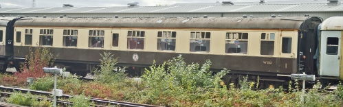 P 1982 by Steam Locomotive Owners Association; to Pullman-Rail in 1984 - Bounds Green until 1995. Crewe Gresty Green; Basford Hall; Carriage Shed until 1996 to Railfilms. By 03/02: centre doors locked off; Commonwealth bogies. By 11/05: from Crewe to Old Oak Common. In store at Old Oak Common until its closure in 2010; then to Eastleigh. By 08/16: at Crewe LNWR Heritage Company in ownership of Locomotive Services Ltd. By 04/19: at Eastleigh Works. 04/22: sold by Riviera Trains and moved to Bo'ness and Kinneil Railway. 04/23: major overhaul carried out over the past year, with new soleplates and crash pillars, together with new ends and other platework. 05/24: with Rampart Engineering at Barrow Hill for attention. 07/25: returned to Bo'ness and Kinneil Railway and in use in Network Rail registered Scottish Railway Preservation Society set. |